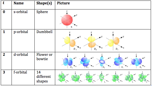 - Magnetic Quantum Number (ml): describes the orientation of the orbital in space (ie. what axis does it lie on)