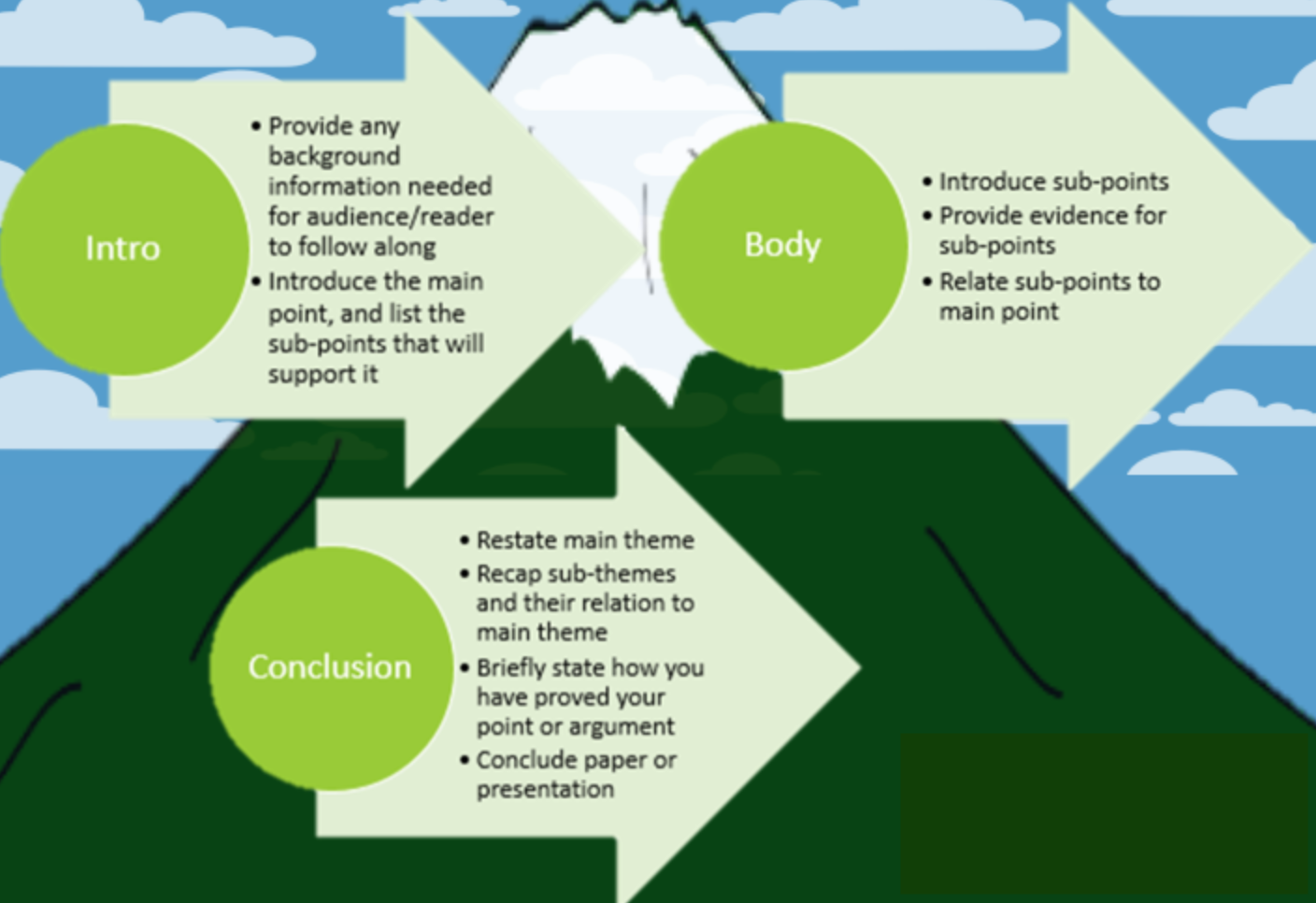 - Introduce the supporting points that you will use to prove the main idea.