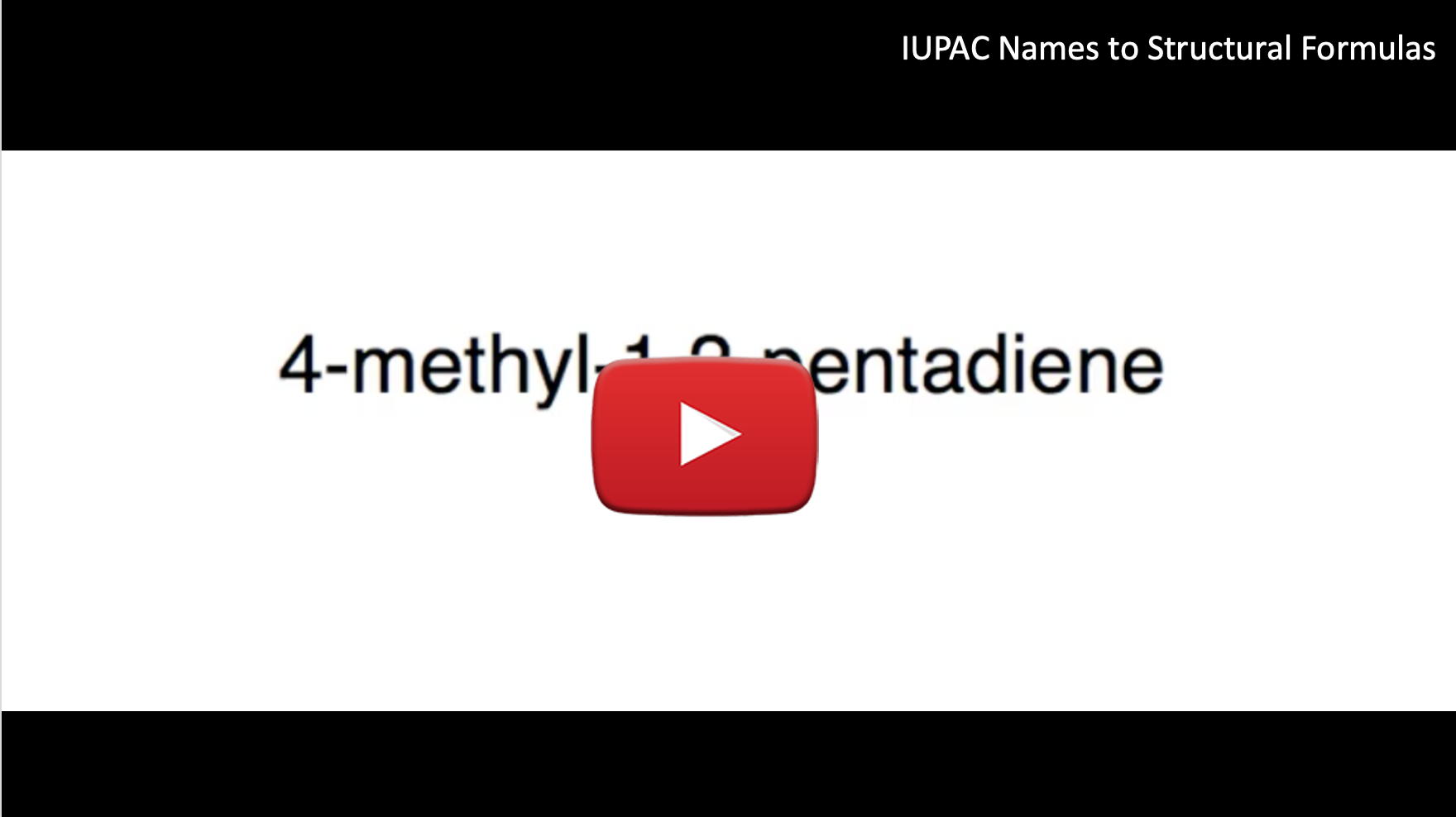 Drawing unsaturated hydrocarbons from IUPAC names is the same process as we learned for alkanes, watch the tutorial below for instructions followed by a step-by-step example.
