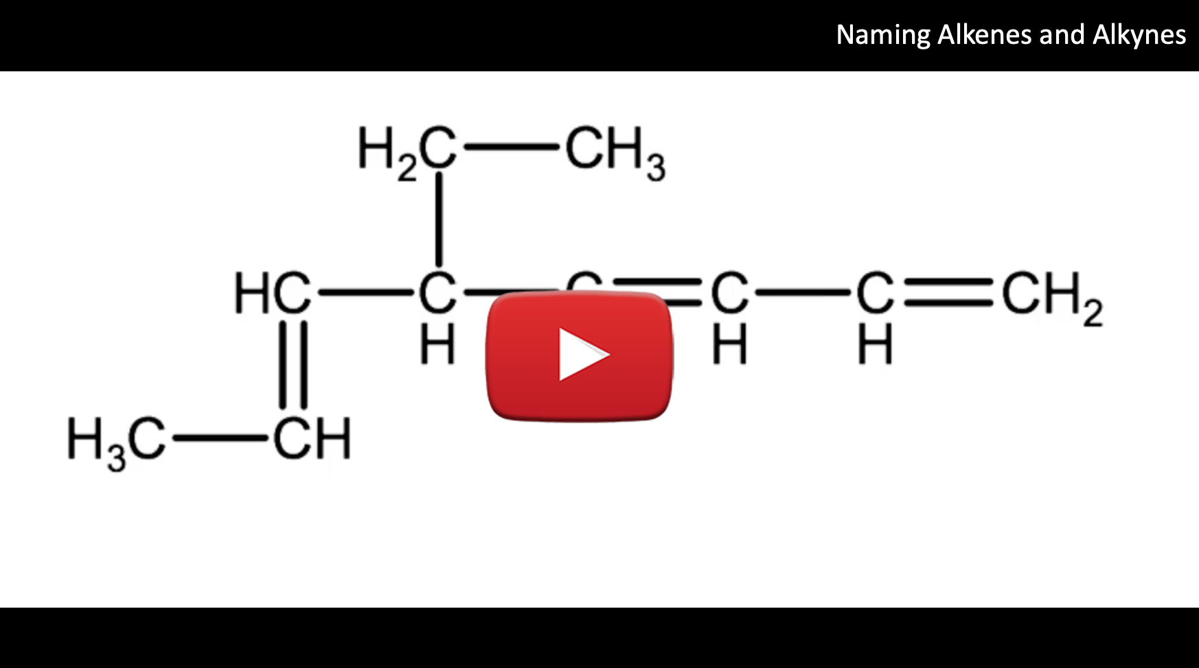 Watch the following video for a tutorial on how to name alkenes and alkynes, followed by step by step instructions below: