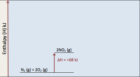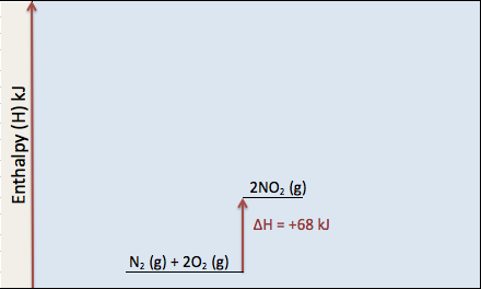 N2 (g) + 2O2 (g) → 2NO2 (g) ΔH = +68 kJ/mol