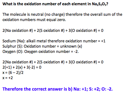 What is the oxidation number of each element in Na2S2O3?