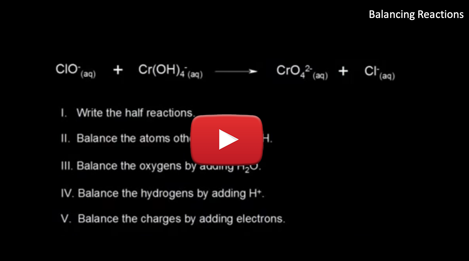 In this activity you will learn how to balance redox reactions in both acidic and basic solutions using the half-reaction method.