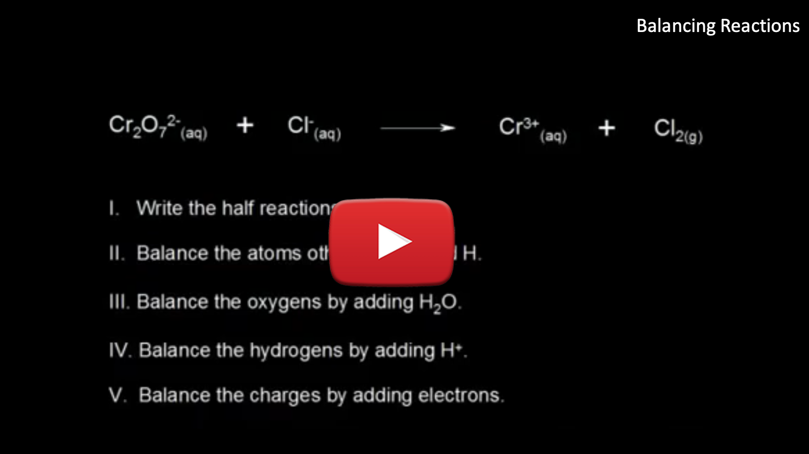 The following videos review these methods for balancing redox reactions using the half-reaction method