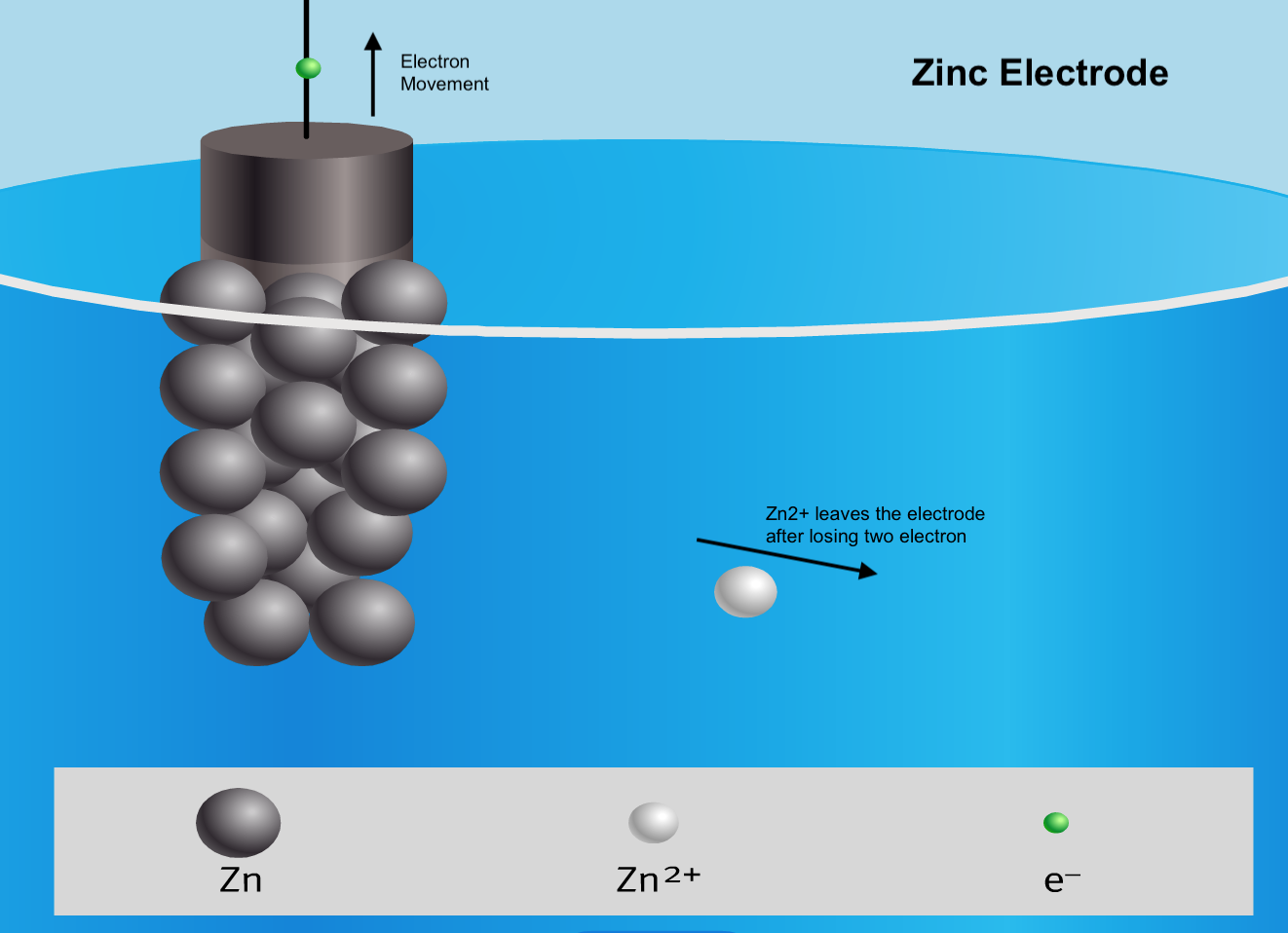 - Each half-cell is composed of a strip of metal (the electrode) immersed in a salt solution that contains ions made up of the same element as the metal strip.