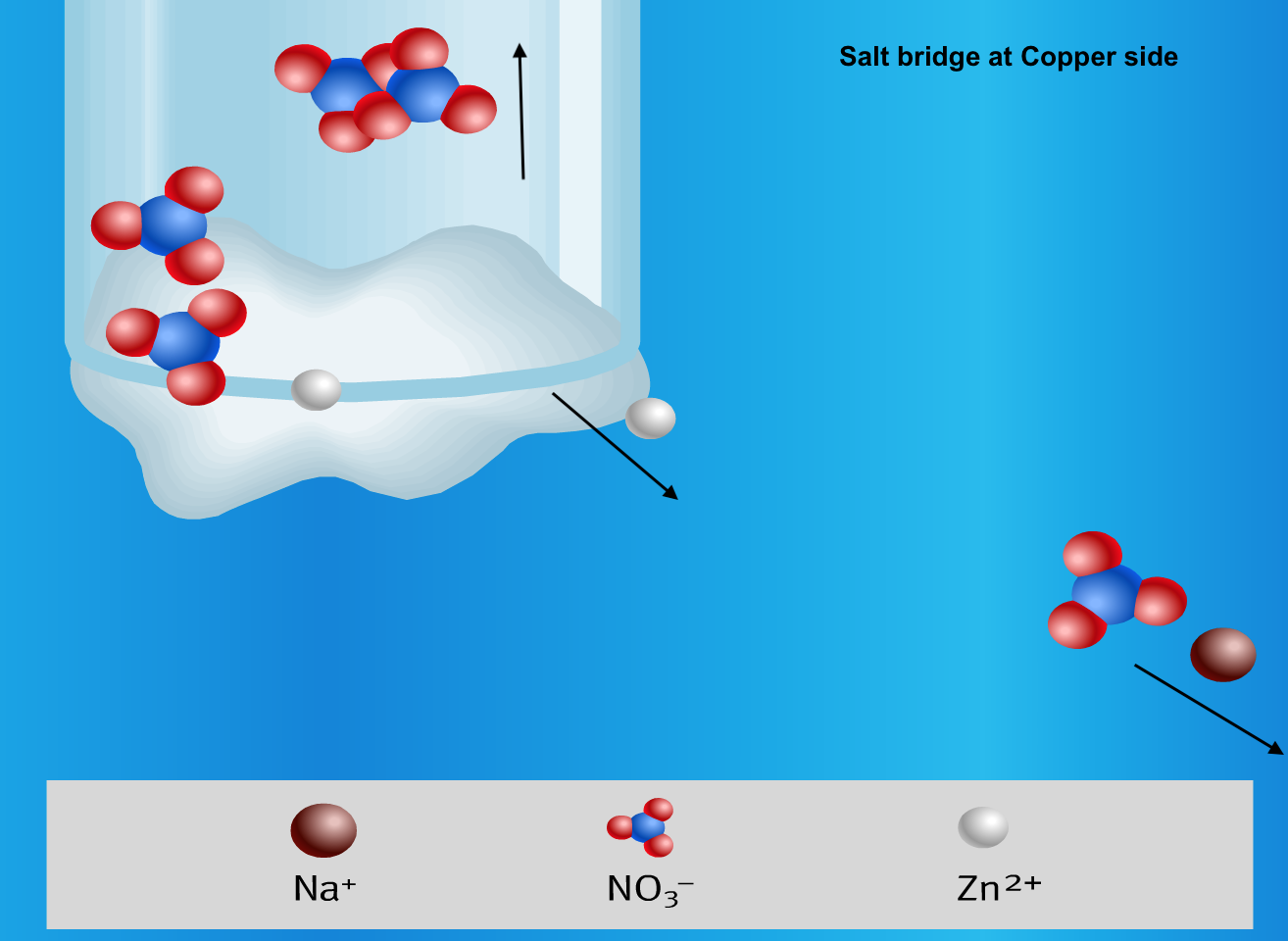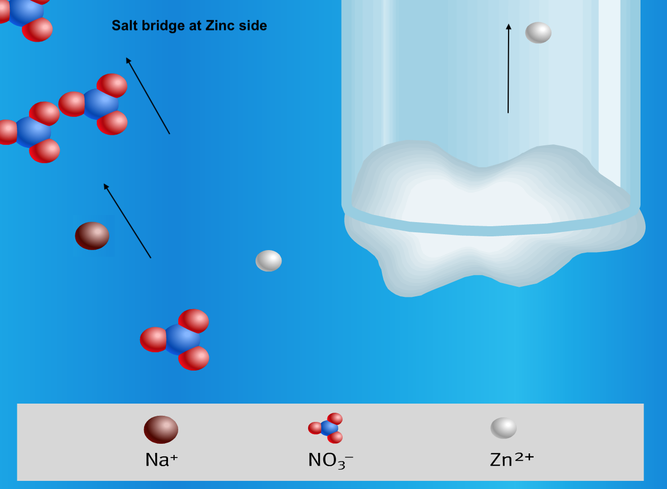 Below is a visual summary of a galvanic cell, with 4 diagrams representing what happens at the 2 electrodes and the 2 ends of the salt bridge.