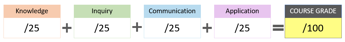 Each evaluation in this course contains a KICA Achievement Chart that your teacher will use to grade your submission. The KICA Achievement Chart is a detailed evaluation guide with criteria and descriptors to grade your work. This grading tool measures the following four categories: o Knowledge and Understanding: Measures how much you know and understand the content. Do you comprehend the meaning and significance of the content? o Inquiry and Thinking: Measures how you use information. Are you thinking about the question, planning your response and giving answers from many different perspectives? o Communication: Measures how you communicate your ideas for different audiences and purposes. Do you use relevant conventions, vocabulary and terminology? o Application: Measures your ability to apply what you have learned in this course to your own life and in other new situations. |