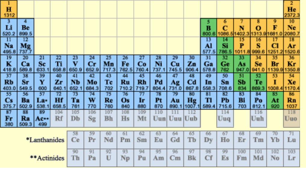 - Is there a relationship between atomic radius and ionization energy (listed under the elements)?