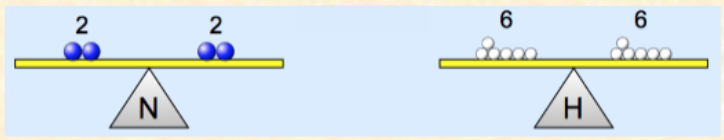 Products: • 2 N (2 x 1 = 2) • 6 H (2 x 3 = 6)
